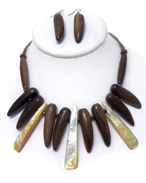 WHOLESALE WOOD WITH SHELL NECKLACE SET 407926