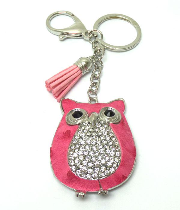 Crystal owl and tassel key chain