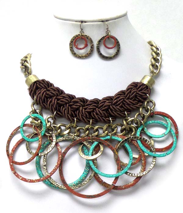 WHOLESALE THICK TWISTED CORD WITH PATINA DISKS NECKLACE SET 408302