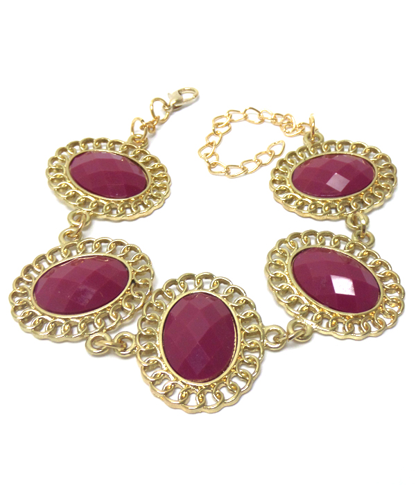 WHOLESALE OVAL SHAPE STONE WITH BORDER BRACELET 408319