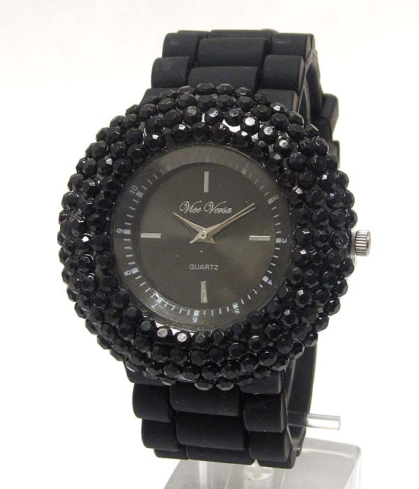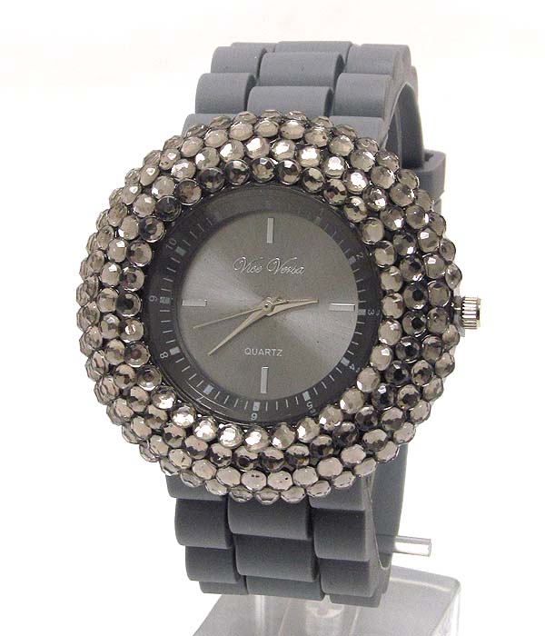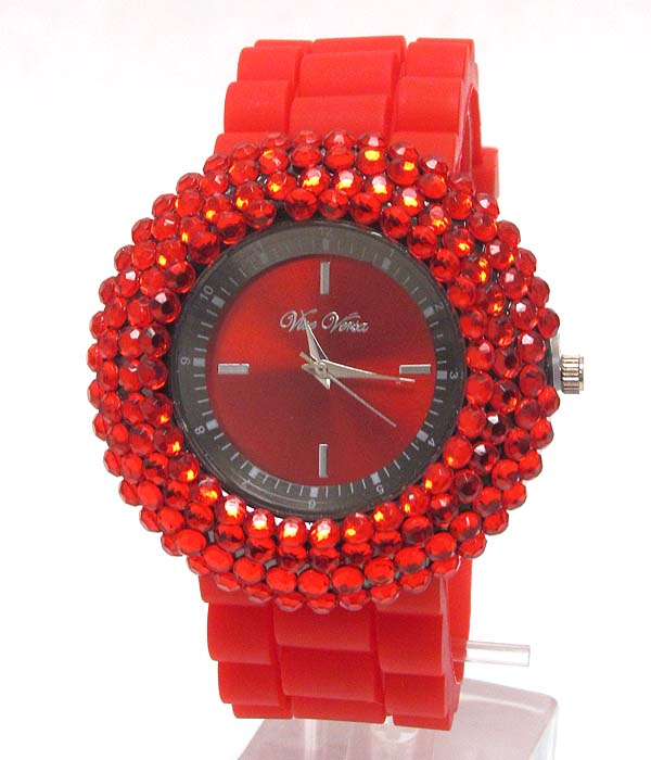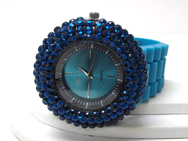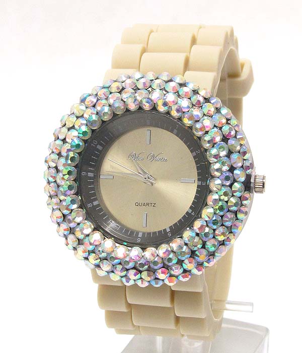 Color crystals rubber band watch