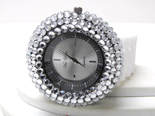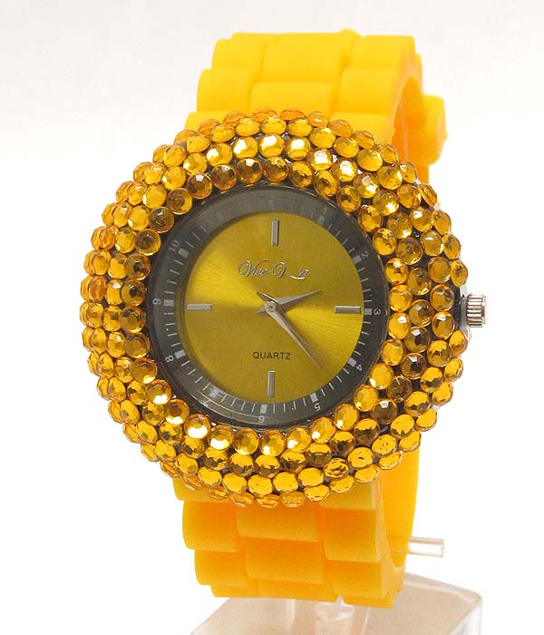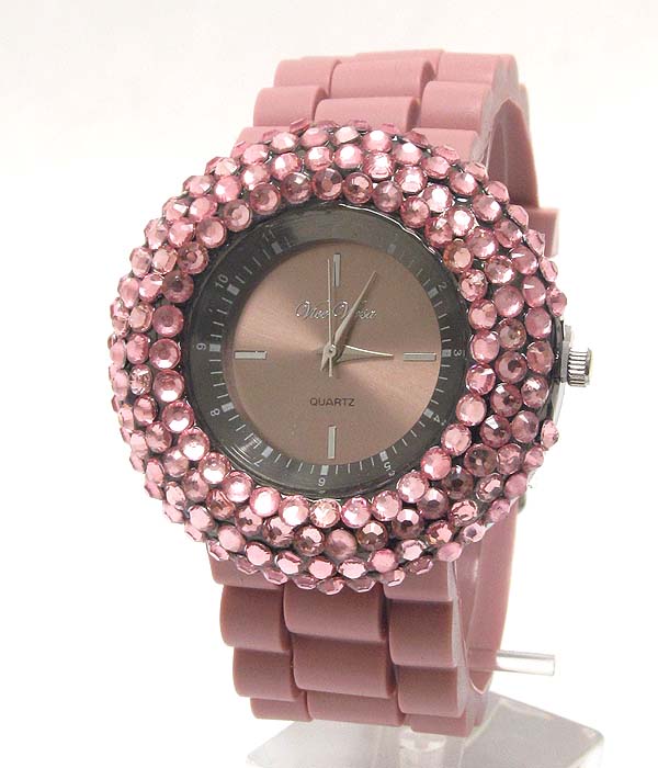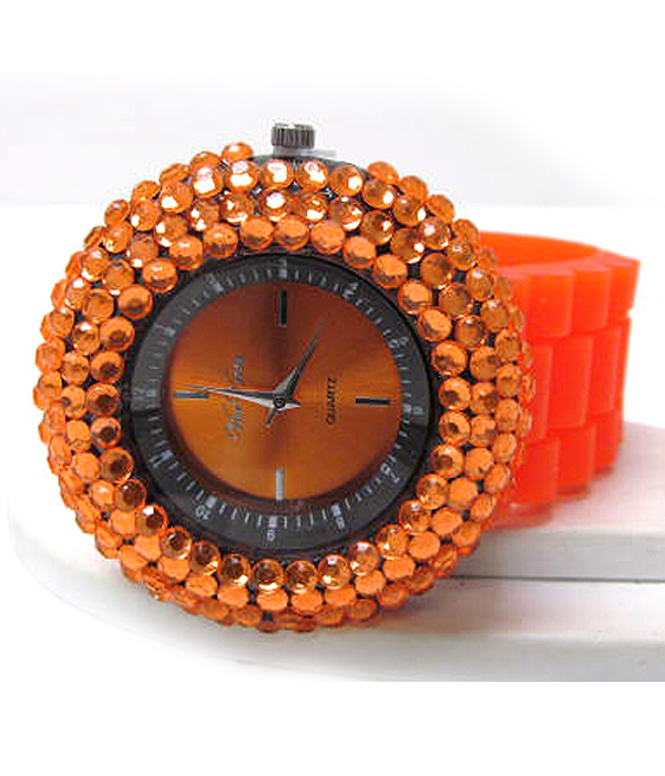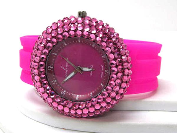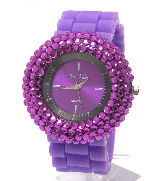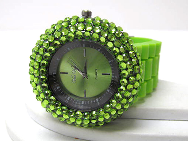 WHOLESALE COLOR CRYSTALS RUBBER BAND WATCH 408496