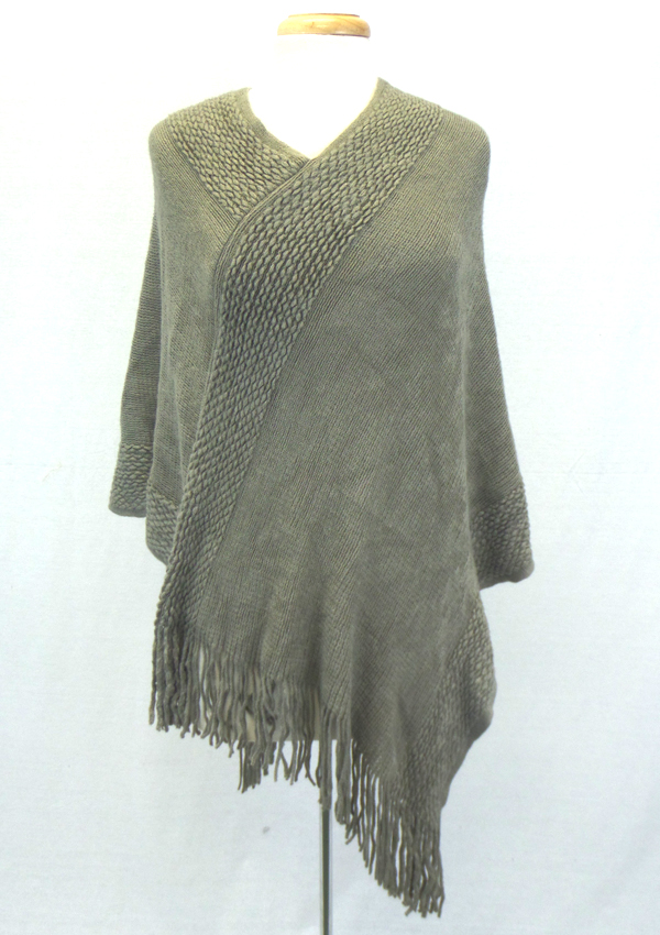 WHOLESALE FRINGE DROP KNIT PONCHO 408649