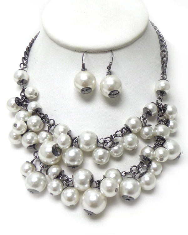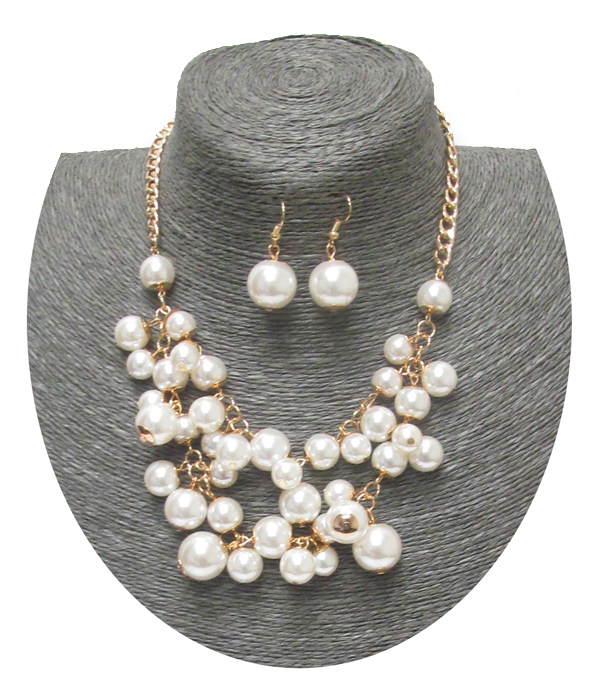 WHOLESALE TWO LAYER PEARL DROP NECKLACE SET 408659
