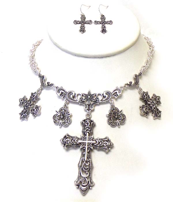WHOLESALE FILIGREE CUT DESIGN CROSS THEME NECKLACE SET 408738