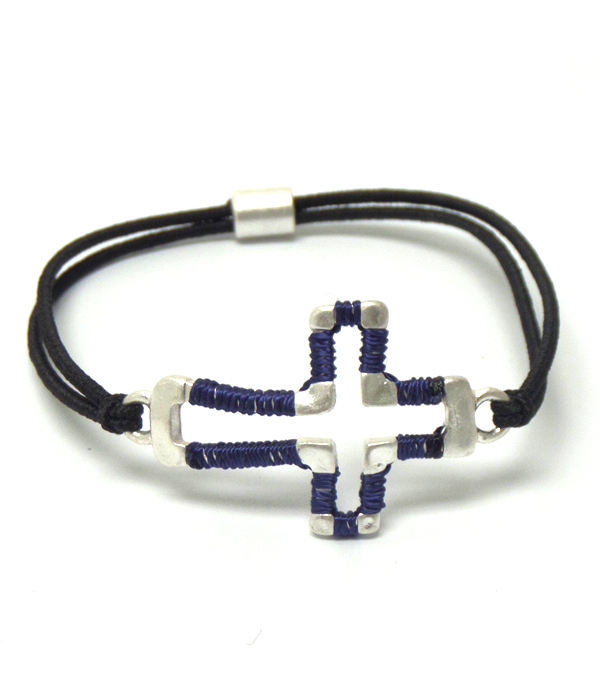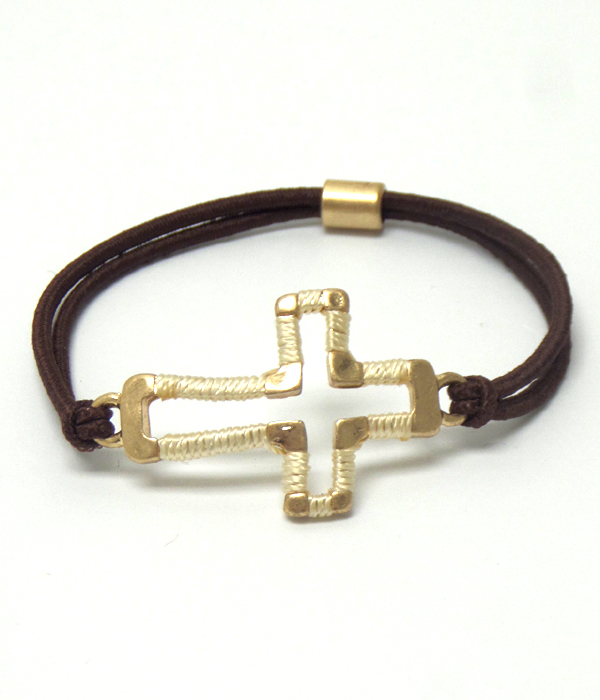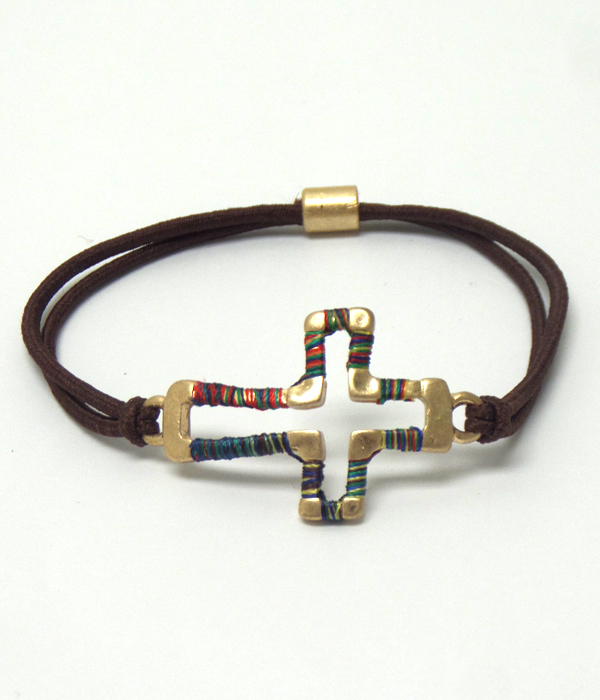 WHOLESALE METAL CUT OUT CROSS THREAD BRACELET 408785