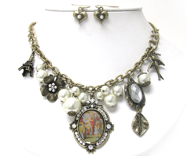 WHOLESALE PARIS FASHION THEME CHARM NECKLACE SET 408958