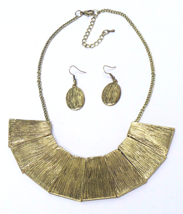 WHOLESALE TEXTURED MULTI METAL BAR LINK NECKLACE SET 408979