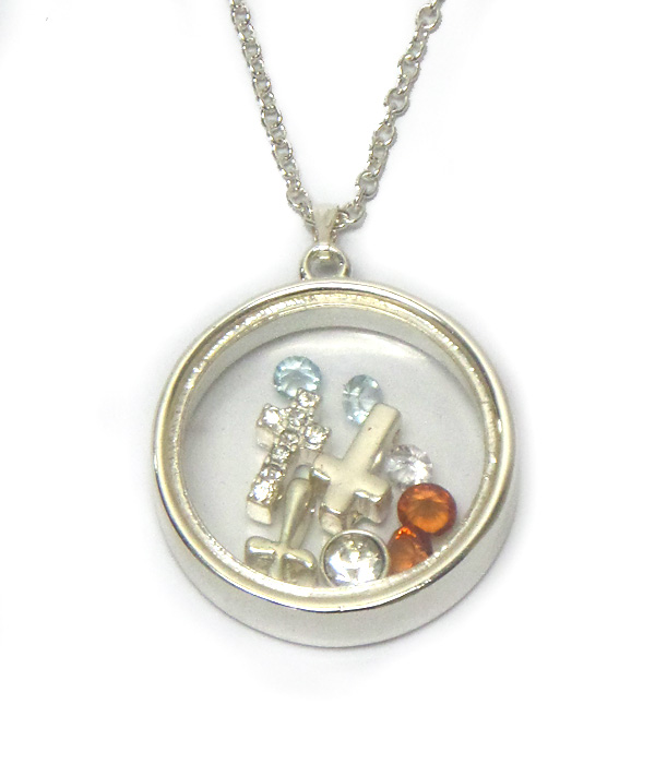 WHOLESALE ORIGAMI STYLE MULTI CROSS CHARMS INSIDE NECKLACE 409328