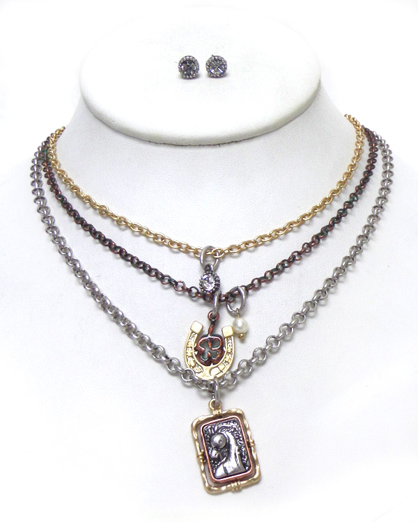 WHOLESALE THREE LAYER CHAIN WESTERN HORSE CHARM NECKLACE SET 409478