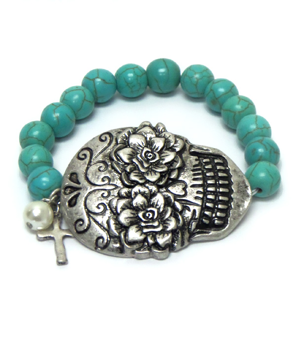 WHOLESALE SUGAR SKULL LINKED BEADS BRACELET 409513