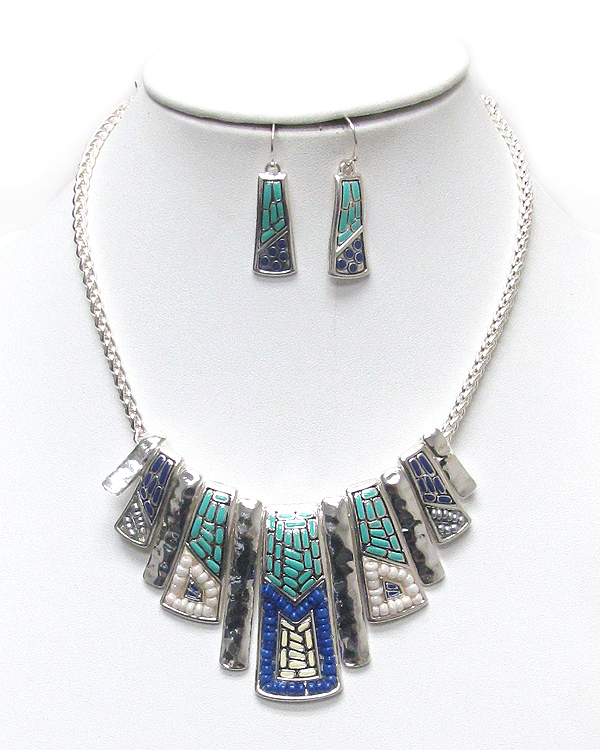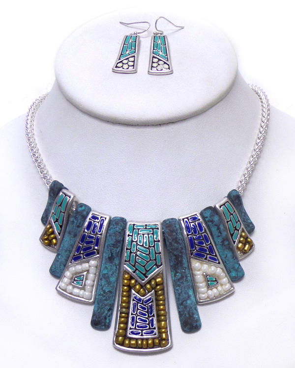 WHOLESALE BEADS WITH METAL TRIBAL DESIGN NECKLACE SET 409525