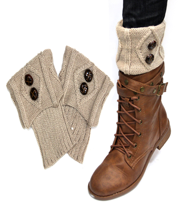 WHOLESALE DOUBLE BUTTON VINTAGE CROCHET BOOT TOPPER SHORT LEG WARMERS - BOOT CUFFS 409597