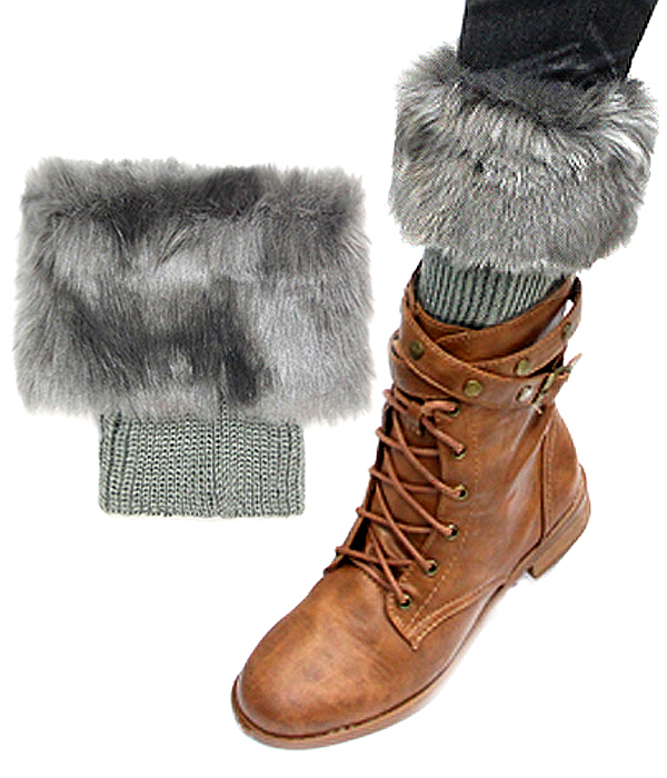 WHOLESALE FUR ACCENT VINTAGE CROCHET BOOT TOPPER SHORT LEG WARMERS - BOOT CUFFS 409602