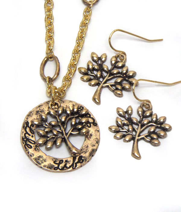 Hammered tree of life necklace set