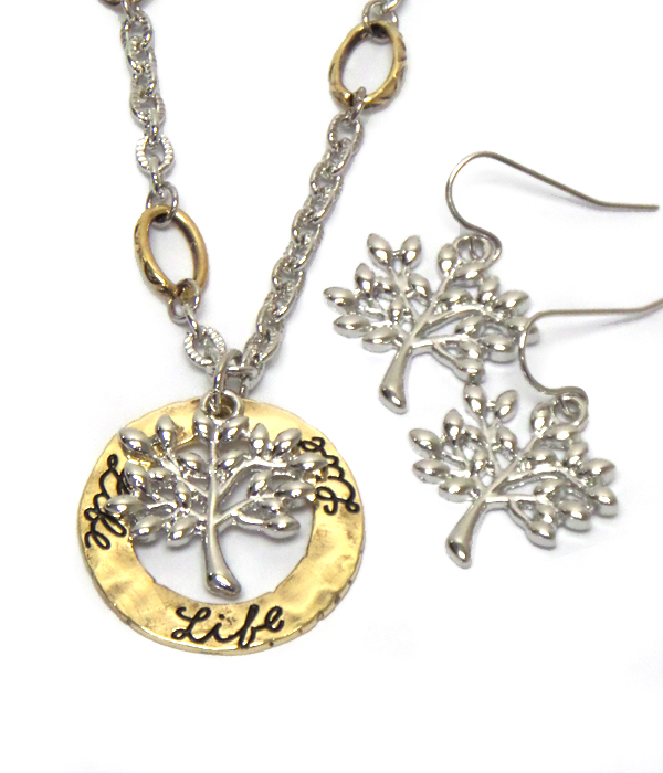 WHOLESALE HAMMERED TREE OF LIFE NECKLACE SET 409872