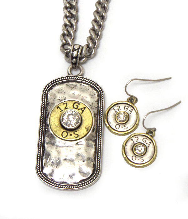 WHOLESALE HAMMERED DOG TAG AND CENTER BULLET NECKLACE SET 409958