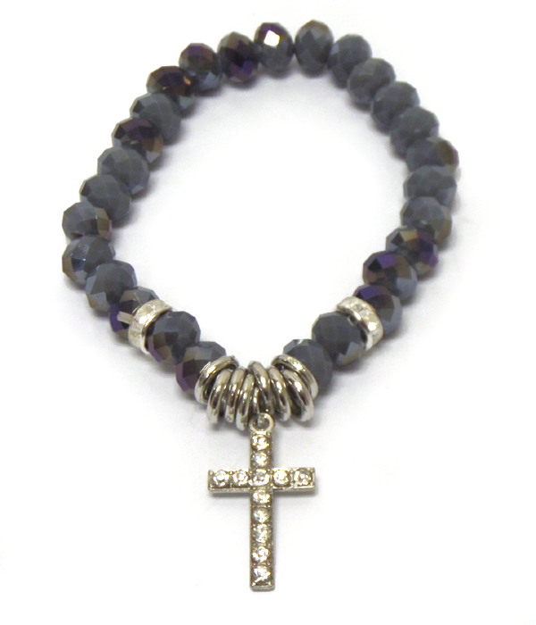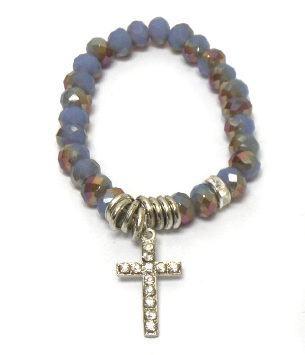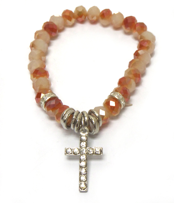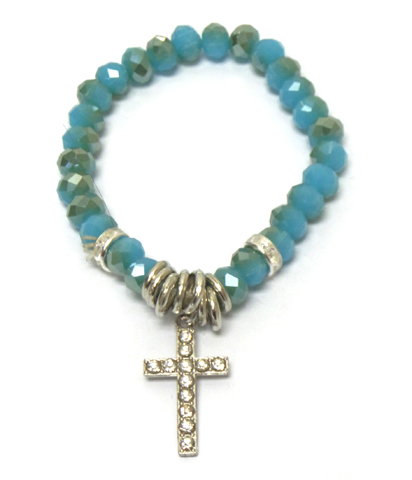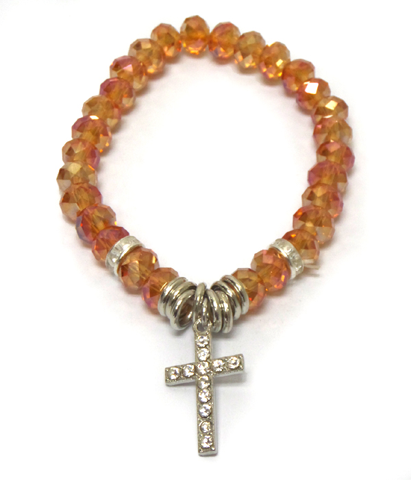 WHOLESALE GLASS BEADS CROSS WITH RHINESTONES CHARM BRACELET 410005