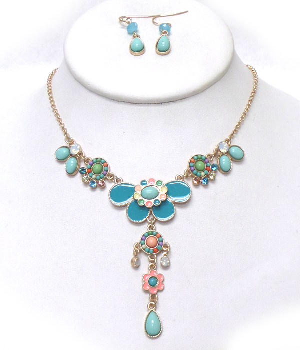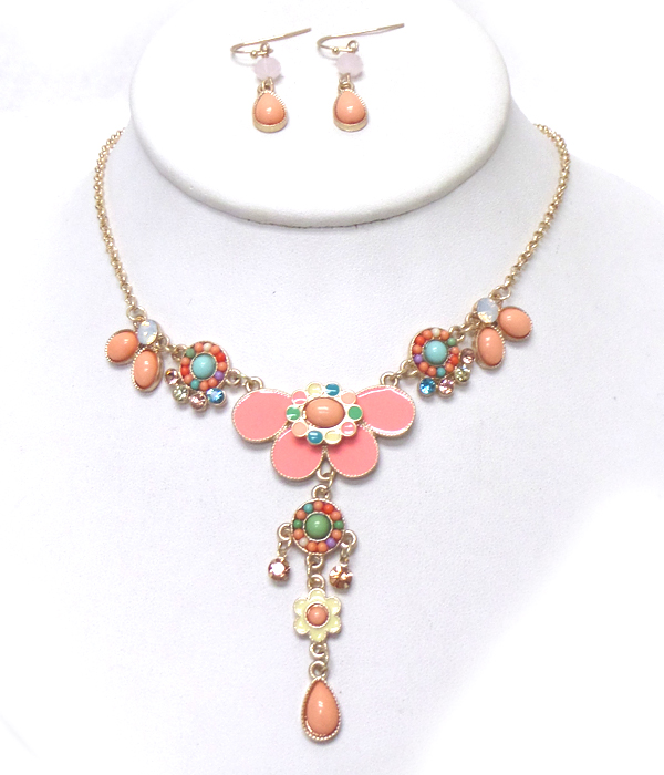 WHOLESALE STONES AND BEADS WITH MULTI SHAPE FLOWER DROP NECKLACE SET 410055