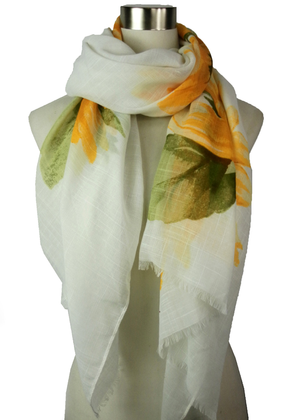 WHOLESALE LARGE SUNFLOWER DESIGN END SCARF - 100% POLYESTER 410088