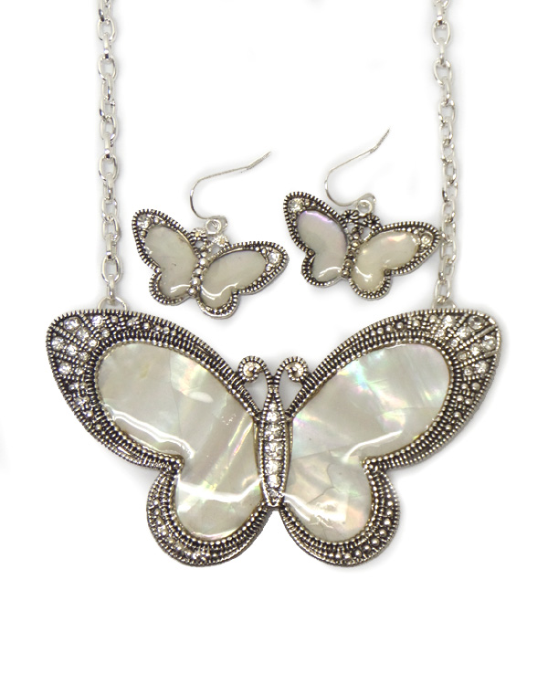 WHOLESALE ABALONE STONE BUTTERFLY NECKLACE SET 410113