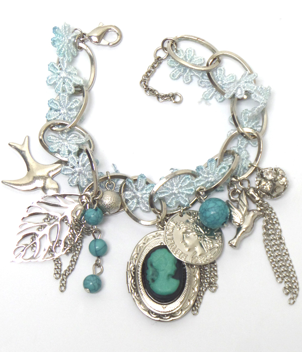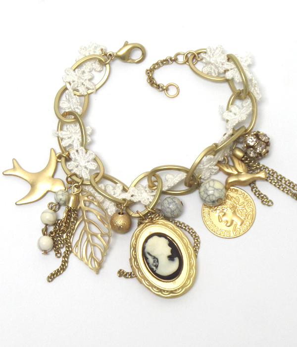 WHOLESALE CAMEO AND MIXED VINTAGE CHARMS BRACELET 410167