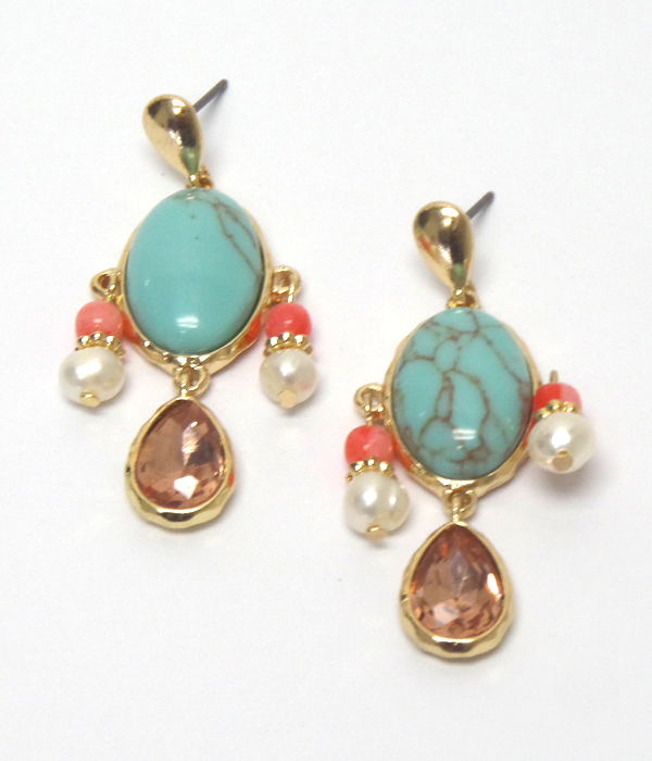 WHOLESALE SEMI PRECIOUS STONE AND PEARL BEADS DANGLE EARRING 410191