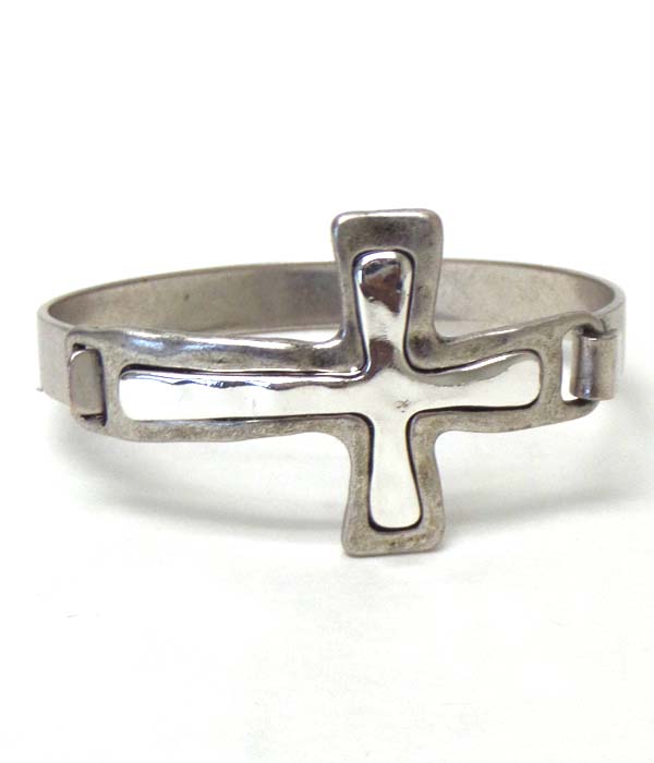 WHOLESALE TWO TONE METAL CROSS BANGLE BRACELET 410221