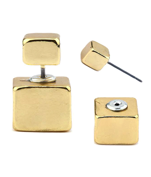 WHOLESALE SIMPLE METAL CUBE DOUBLE SIDED FRONT AND BACK EARRING 410542