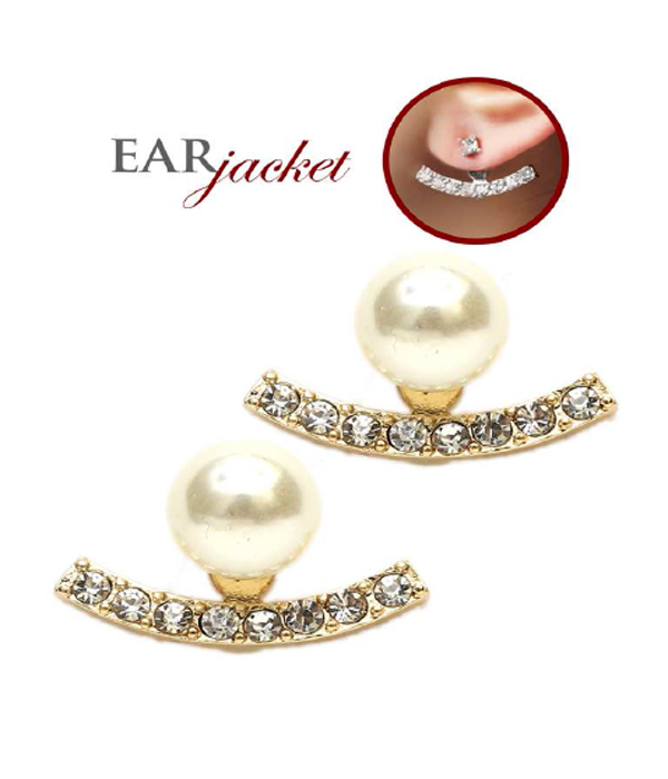 WHOLESALE PEARL AND CRYSTAL BAR EAR JACKET EARRING 410651
