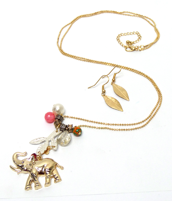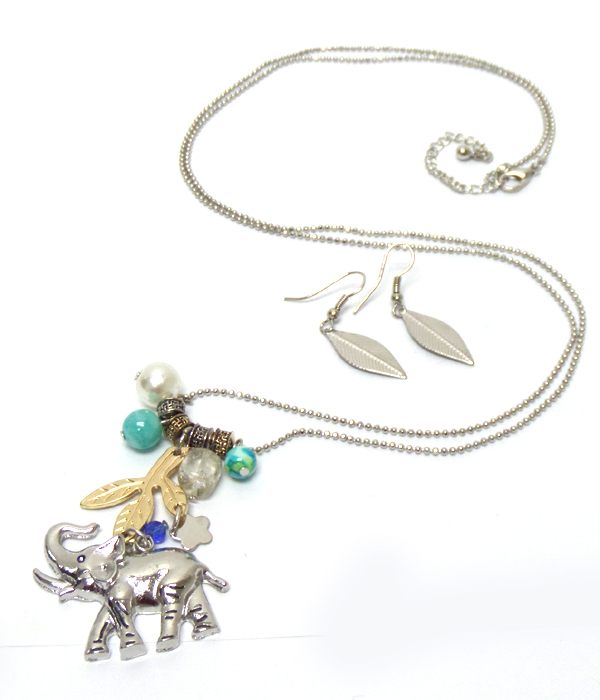 WHOLESALE LIFE TREE WITH CHARMS METAL LONG NECKLACE SET 410717
