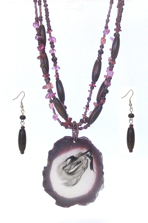 WHOLESALE LARGE FLAT STONE PENDANT MIXED CHIP STONE NECKLACE SET 410788