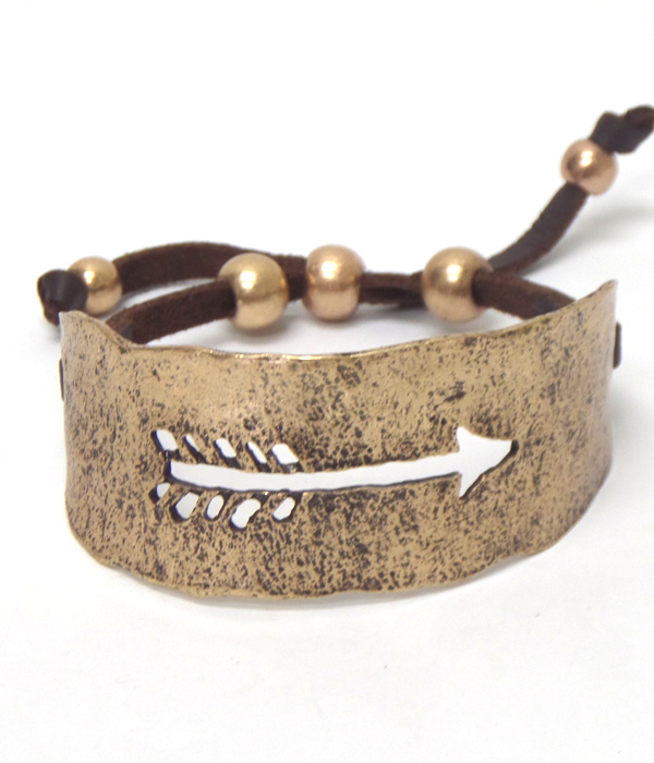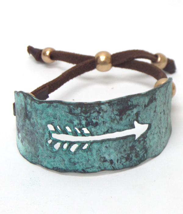 Pull and tie engraved metal arrow bracelet