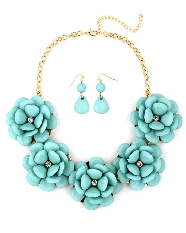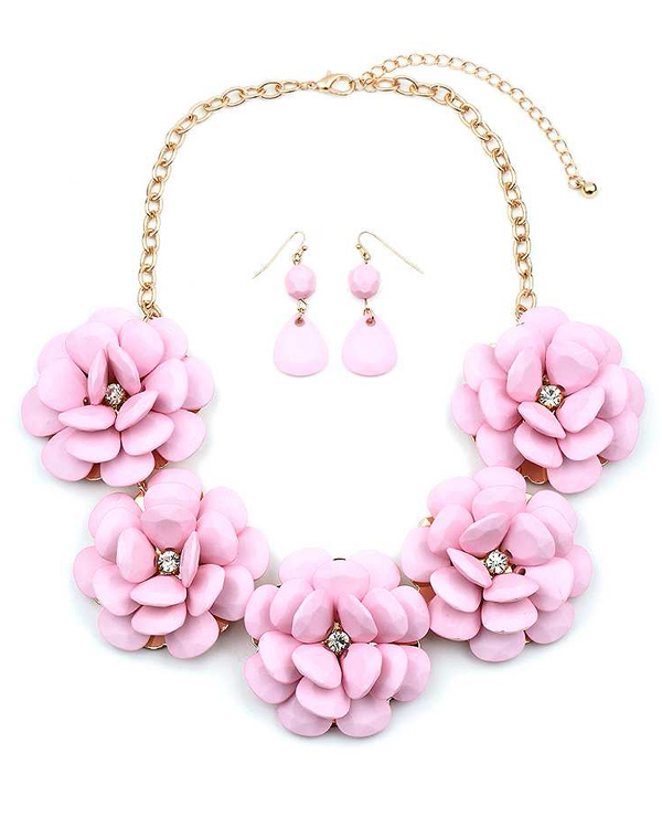 Crystal center camellia flower necklace set
