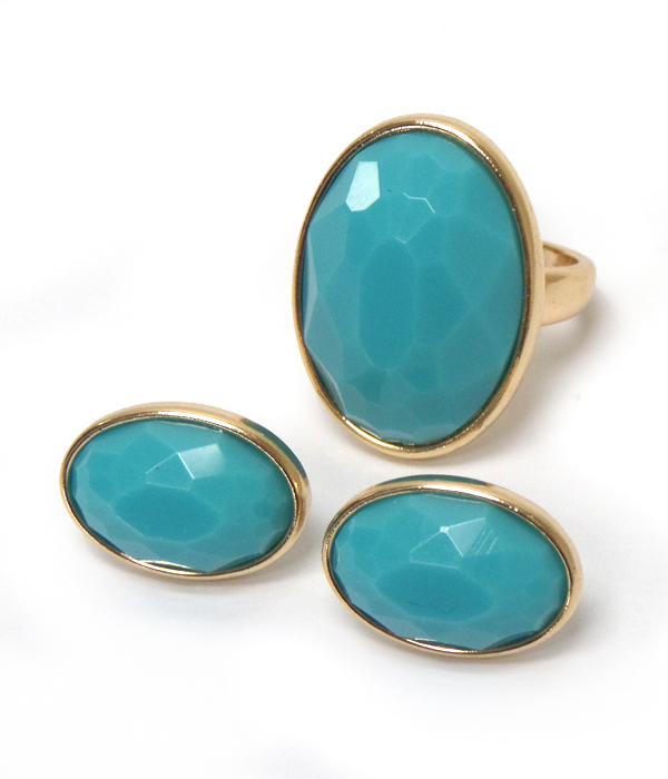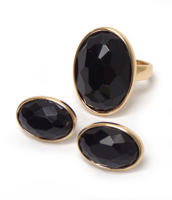 Single stone metal ring and earring set