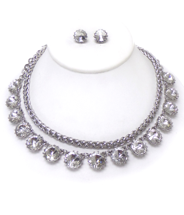 WHOLESALE TWO LAYER CHAIN AND ROUND CRYSTALS LINKED NECKLACE SET 411224