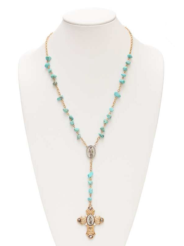 WHOLESALE FILIGREE CROSS PEARL ROSARY NECKLACE 411437