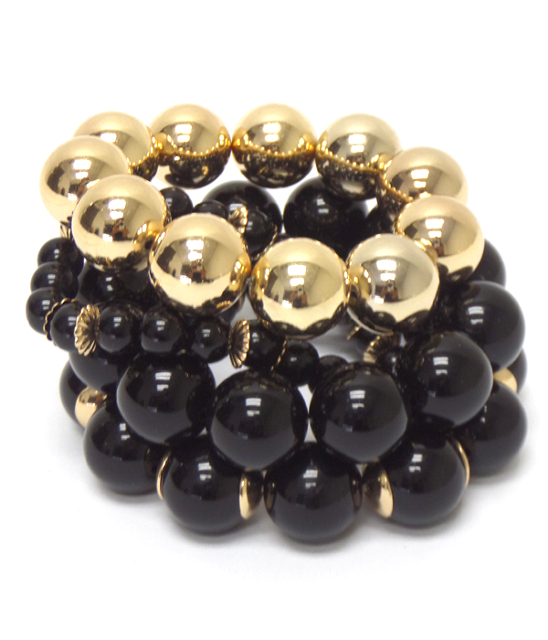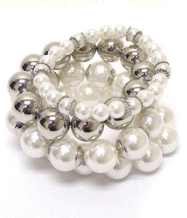 WHOLESALE PEARL AND METAL BALL LINK STRETCH BRACELET SET OF 4 411478