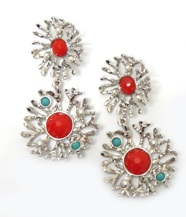 WHOLESALE PEARL ACCENT CORAL FLOWER DROP EARRING 411489