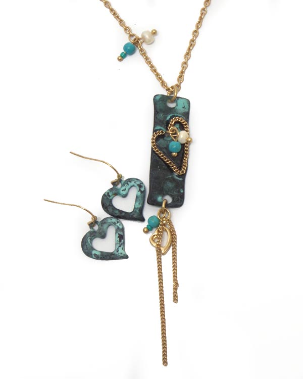 Metal heart with tassel drop necklace set