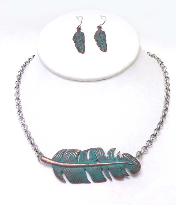 Metal feather necklace set