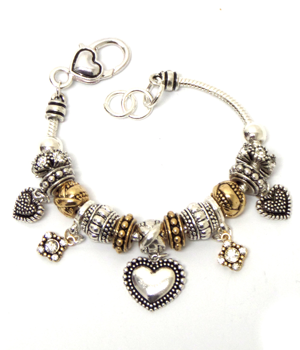 WHOLESALE EURO STYLE HEART AND TEXTURED BALL CHARM BRACELET 411804