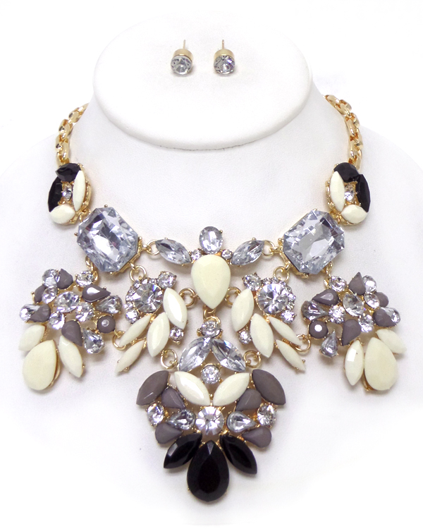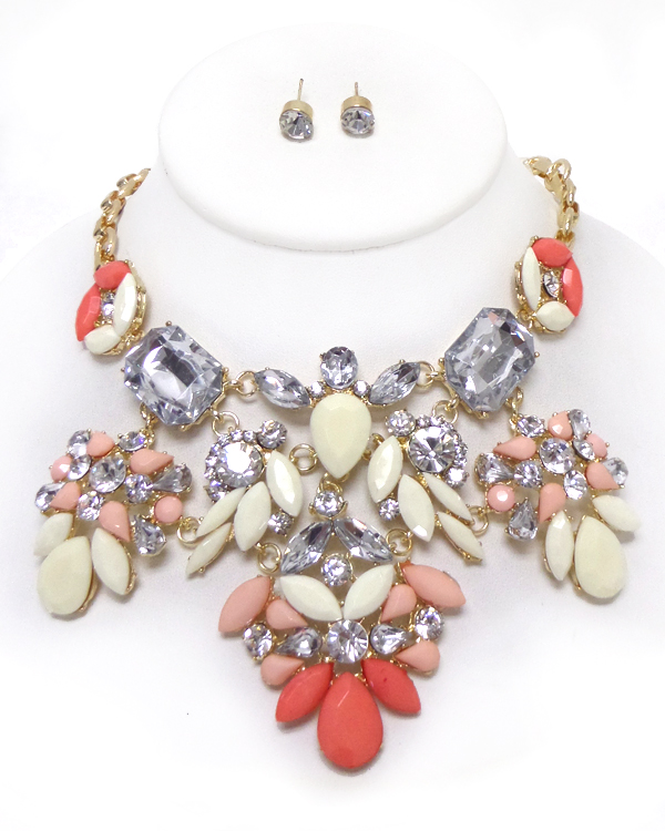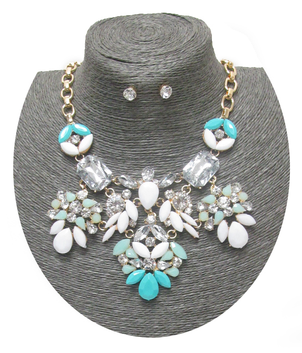 WHOLESALE MULTI SHAPE STONE MIX STATEMENT NECKLACE SET 412024