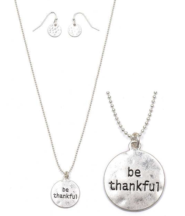 WHOLESALE HANDMADE MESSAGE METAL DISK NECKLACE SET - BE THANKFUL 412072