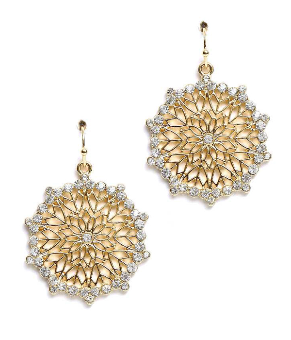 WHOLESALE CENTER AND EDGE CRYSTAL METAL FILIGREE EARRING 412188