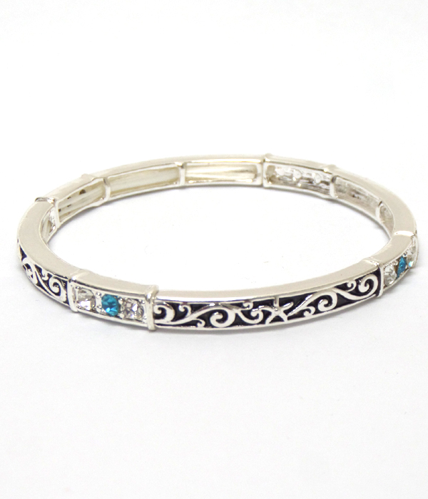 WHOLESALE PATINA METAL TEXTURED WITH CRYSTALS BRACELET 412366
