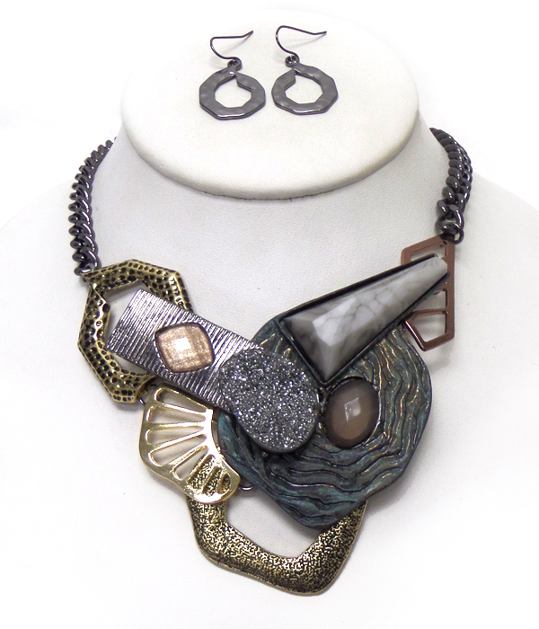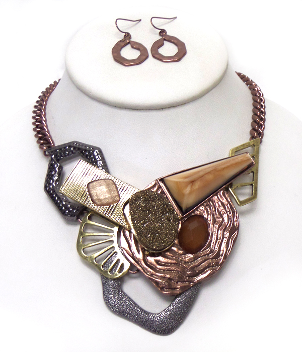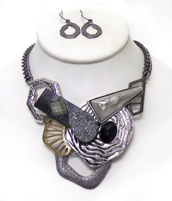 WHOLESALE PATTERN SHAPES WITH MULTI STONES CHAIN NECKLACE SET 412502
