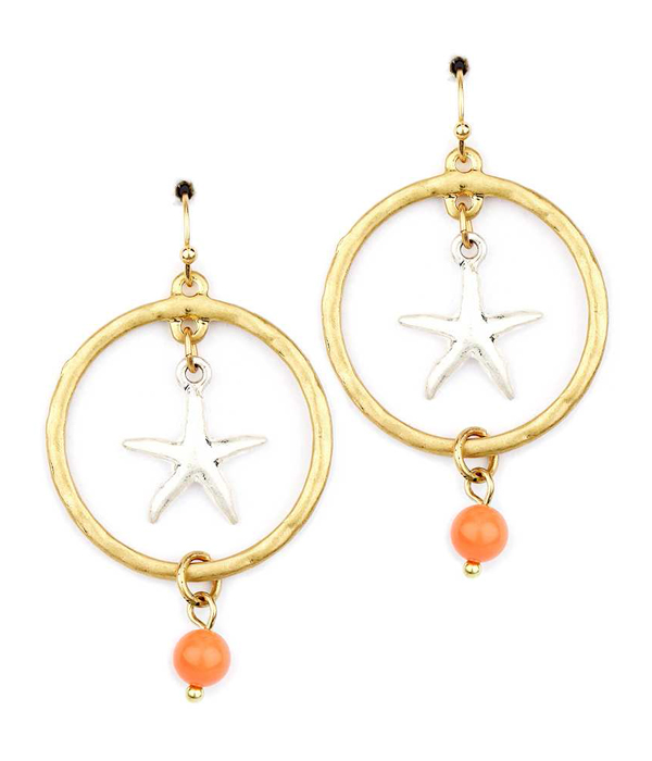 WHOLESALE SEMI PRECIOUS STONE AND STARFISH CIRCLE DROP EARRING 412523