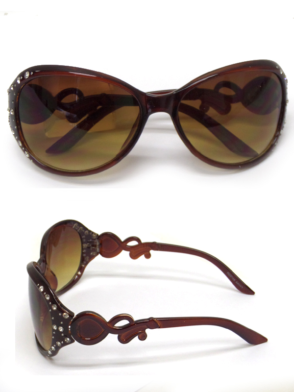 WHOLESALE CRYSTAL STUD CURVED LENSE ACRYLIC FRAME SUNGLASSES=UV-PROTECTION 412750