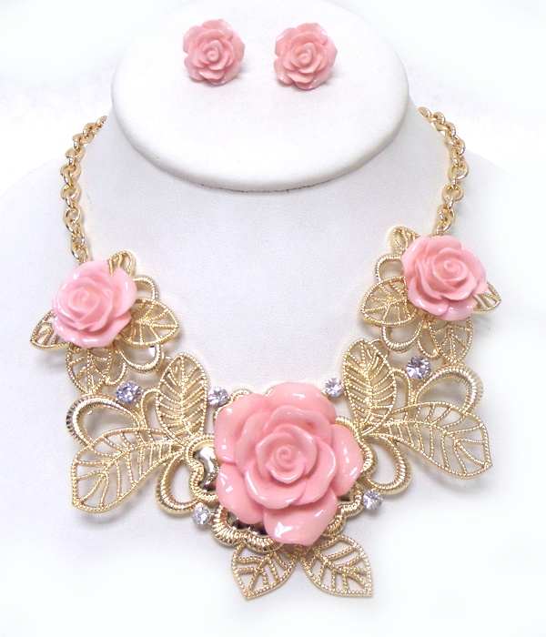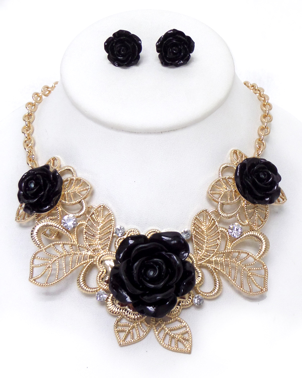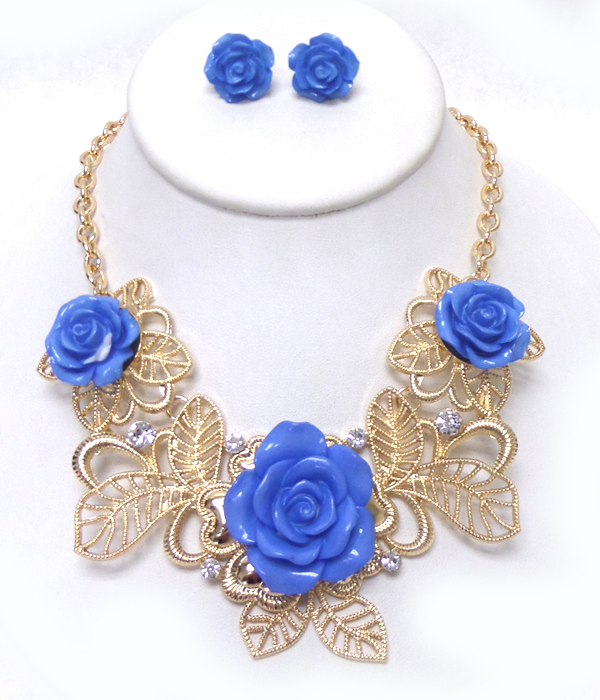 Metal flower bib style necklace set